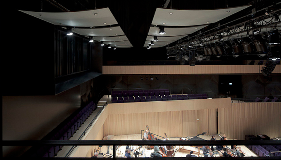 Gebogene, satinierte Gläser, mobile Deckensegel