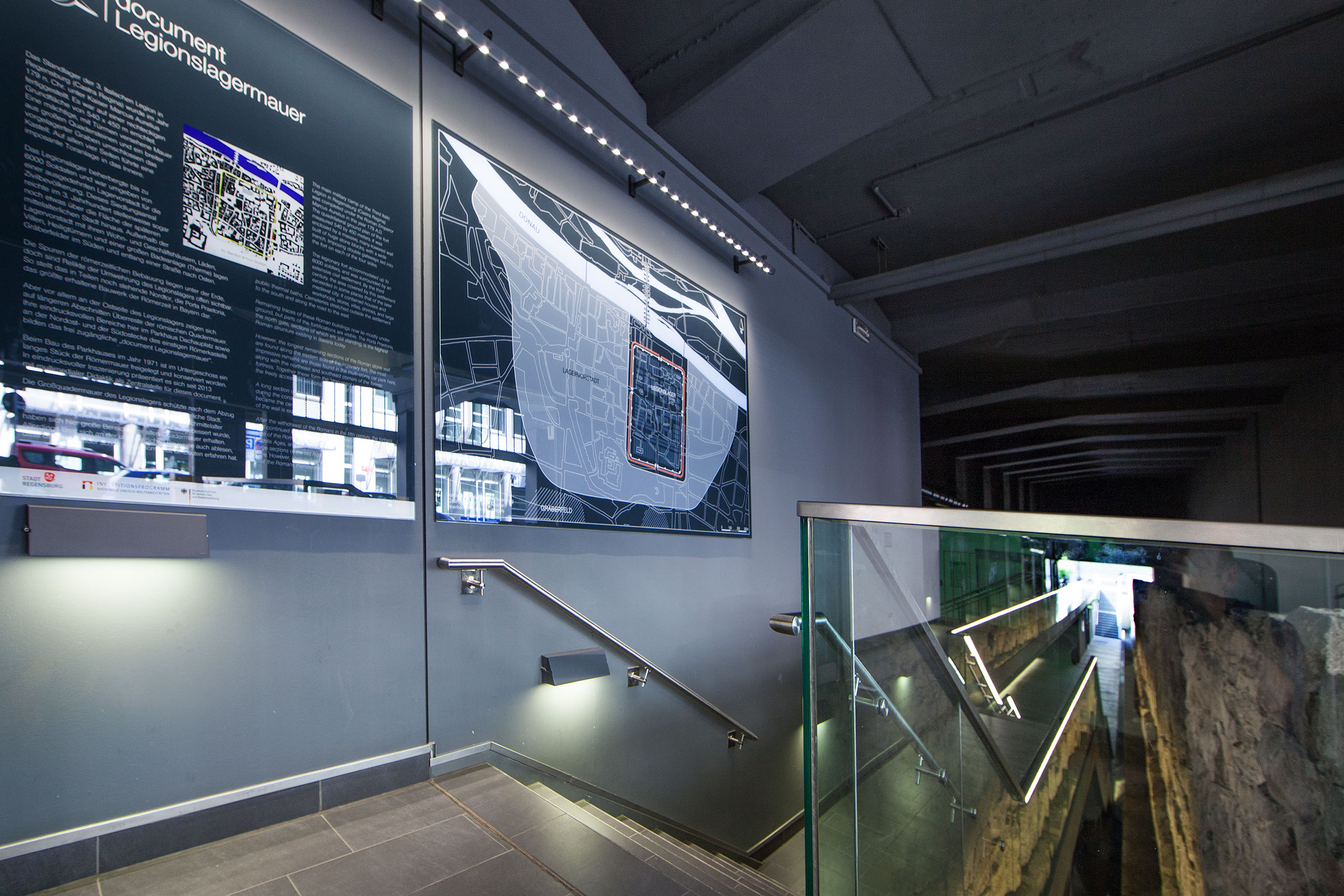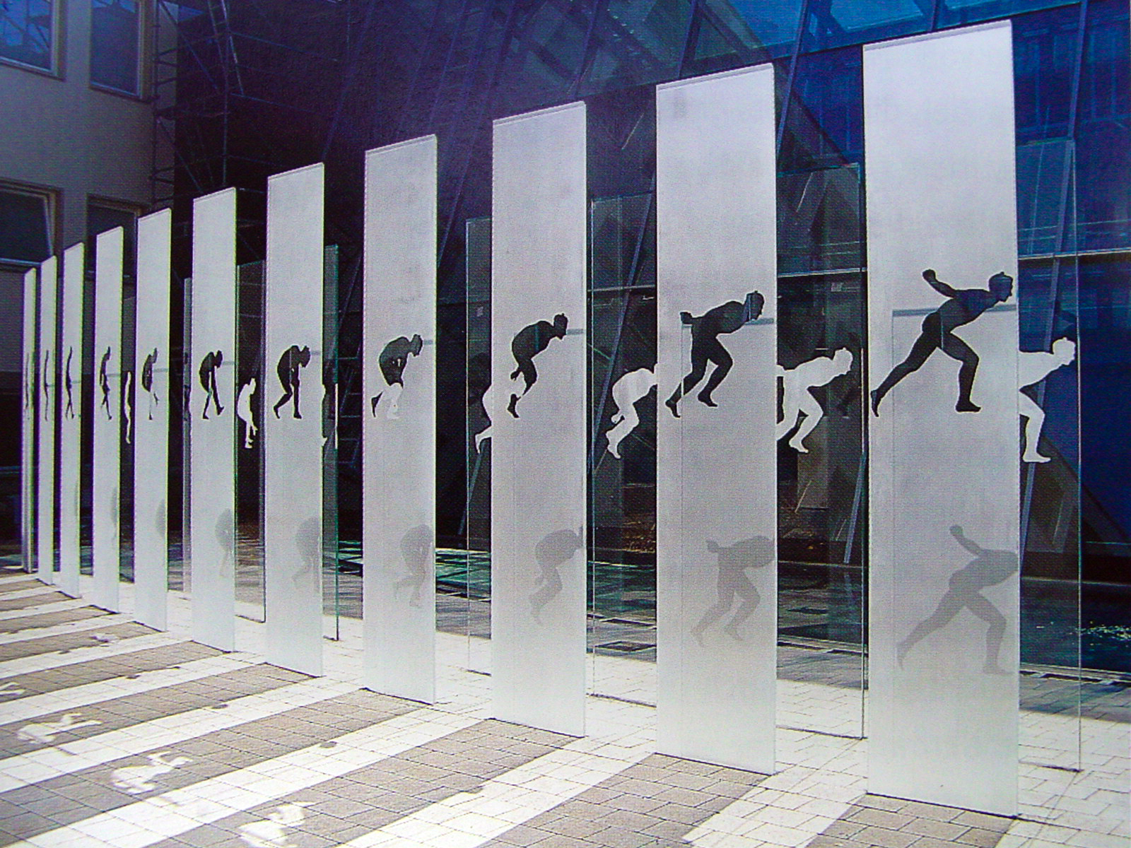 Glasgeländer, bedruckte Erläuterungstafeln aus Glas
