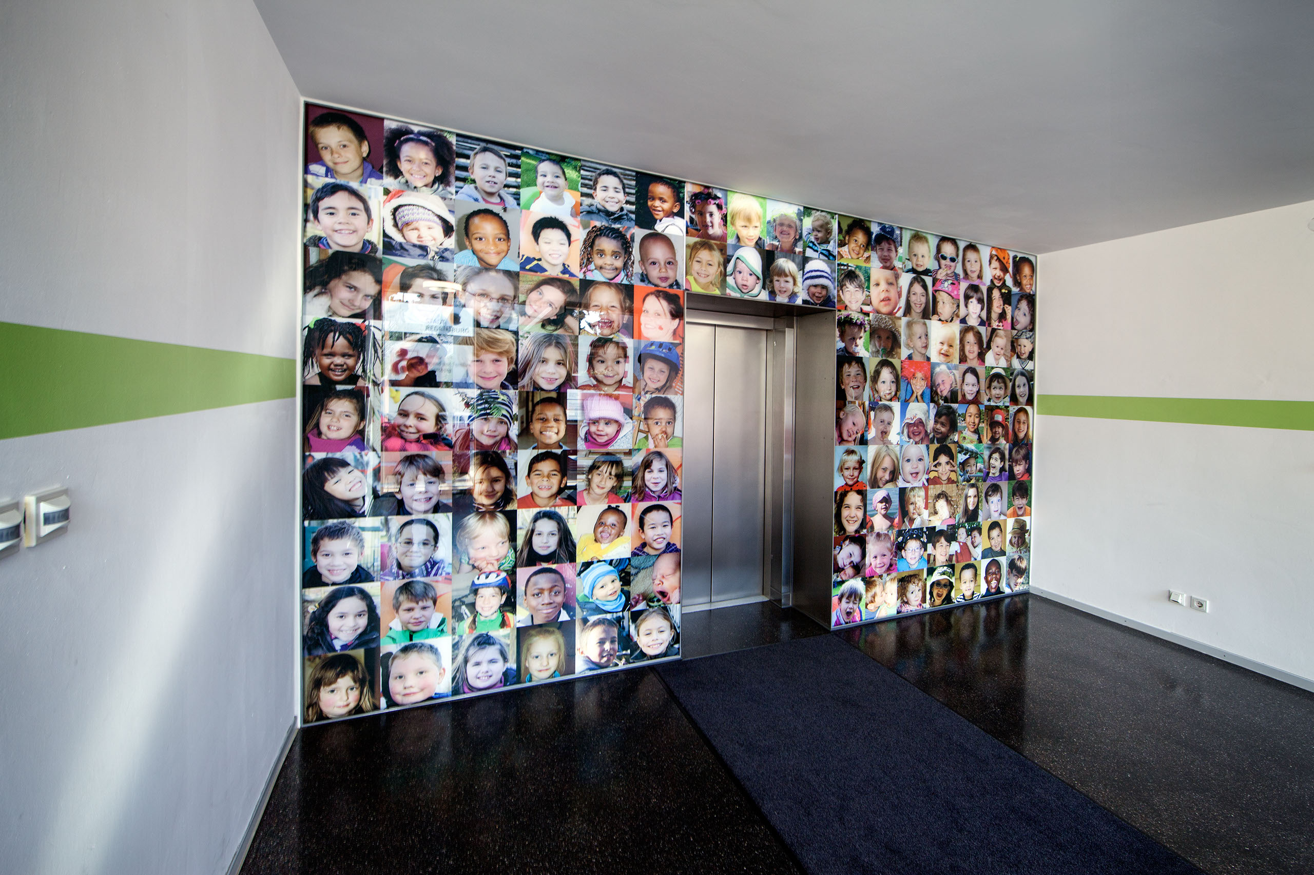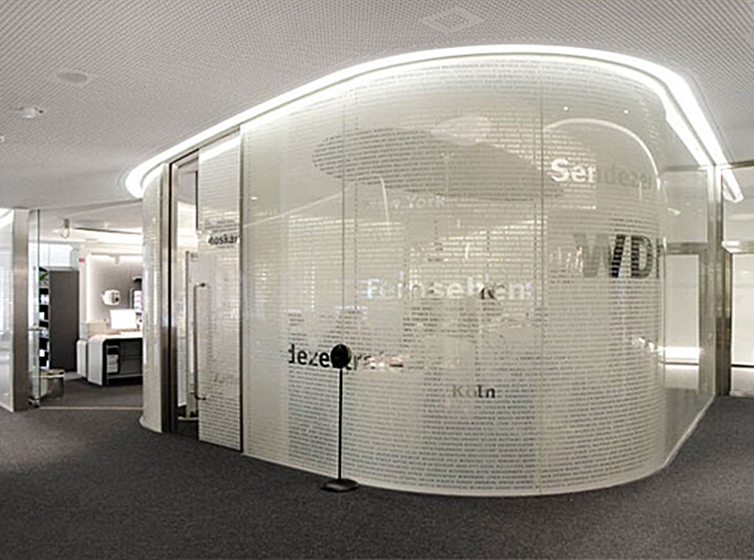 Hinterleuchtete, bedruckte Glaswand als Komplettleistung