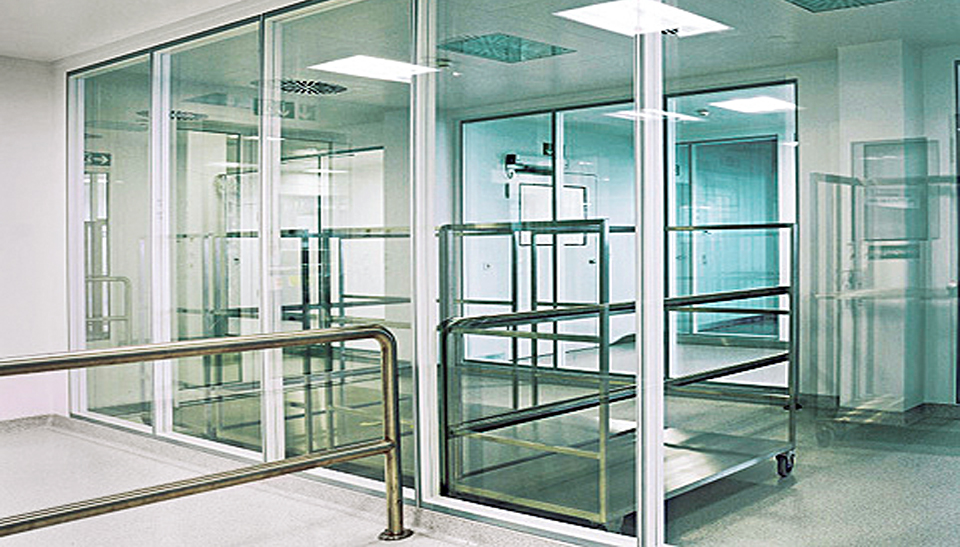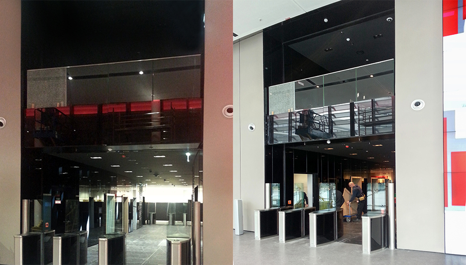 Aufzug-Lobbies, resanierbare Glas-/Wandverkleidungen inkl. kompletter Unterkonstruktion