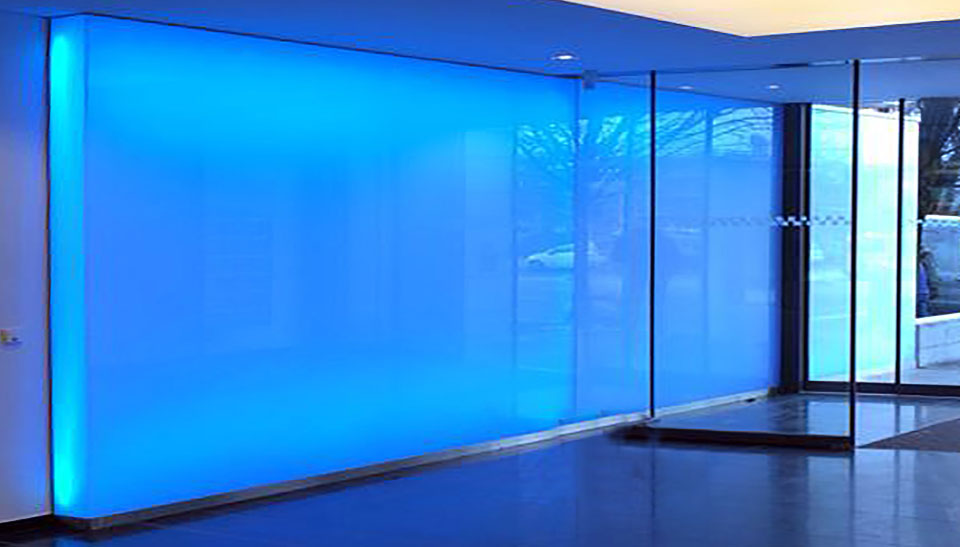 Glaswände hinterleuchtet inkl. Unterkonstruktion und Beleuchtung